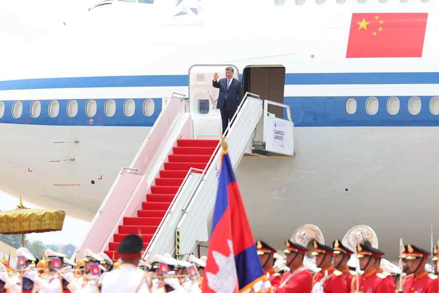 当地时间4月17日上午,国家主席习近平乘专机抵达金边,应柬埔寨国王西哈莫尼邀请,对柬埔寨进行国事访问。