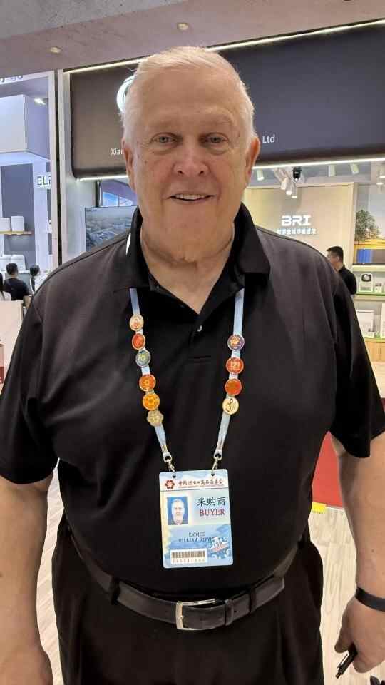 “中国产品,great!”美国采购商William Endres向记者竖起了大拇指。William Endres一直都是广交会的“粉丝”——其采购证蓝色挂绳上那十来枚标有不同年份的广交会纪念徽章就是明证——他从1986年起就一直在中国做小电器生意,过去每年都会来参加两次广交会,见证了中国制造的不断升级:“如今广交会上的中国产品既有科技含量,又有价格优势,很受美国市场欢迎。”目前,William的公司在美国已经代理了十余个小家电品牌,销售量在全美行业市场占比几乎达到八成。“广交会给我提供了认识制造商和供应商的机会,让我们有机会跟中国企业合作做生意,所以广交会对我非常有价值。”William表示。