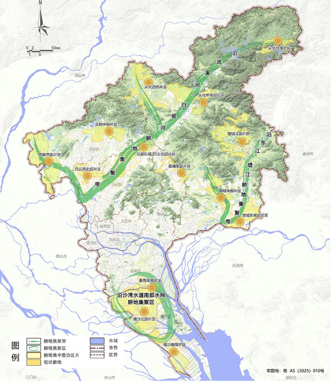 优化耕地布局是本次规划的重要内容。广州将构建“两带一区多片”耕地保护空间格局,即沿流溪河-白坭河、沿东江-增江两条耕地集聚带,沿沙湾水道南部水网耕地集聚区以及多个耕地集聚片。通过开展补充耕地潜力资源分级评价,规划布局“白云-花都-从化”“增城”“番禺-南沙”三大耕地保护重点区,推进全域土地综合整治,打造集中连片优质耕地。