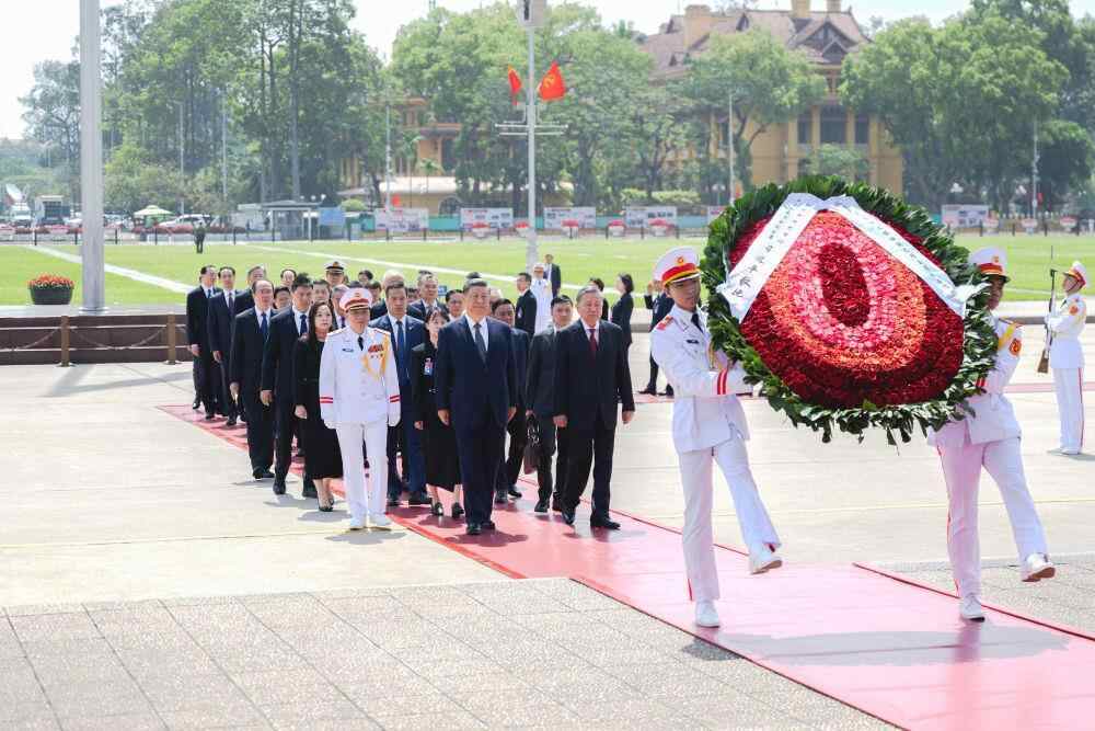 4月15日,在越共中央总书记苏林陪同下,习近平总书记瞻仰胡志明陵并敬献花圈。过去3次访问越南,习近平总书记都曾瞻仰胡志明陵并敬献花圈。在2017年的紧凑行程中,习近平总书记还探访了胡志明故居。