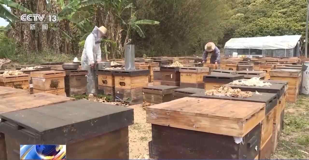 据了解,荔枝花是雌雄同株异花,蜜蜂是很好的授粉媒介,可以提高坐果率、确保荔枝丰收。