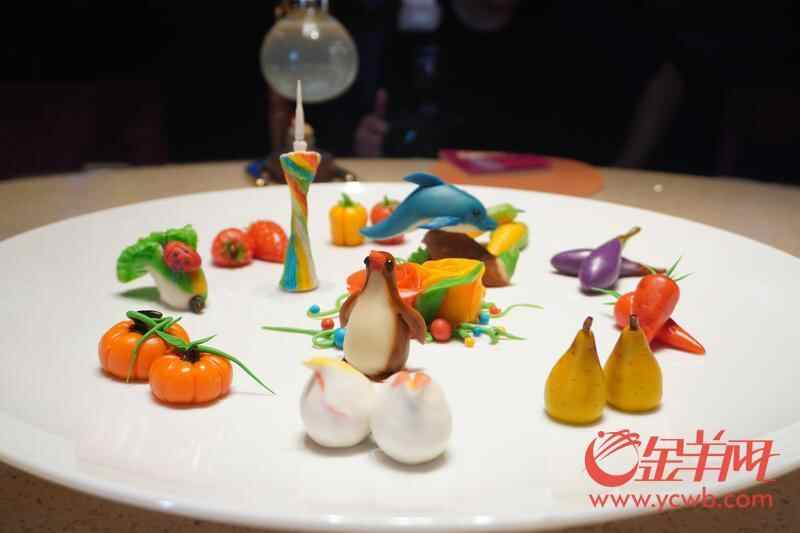 “明珠缀彩”灵感源自海珠区“宝珠化礁”的传说,以冬瓜制成宝珠状,宛如明珠出水,寓意“明珠缀彩,福至客来”。