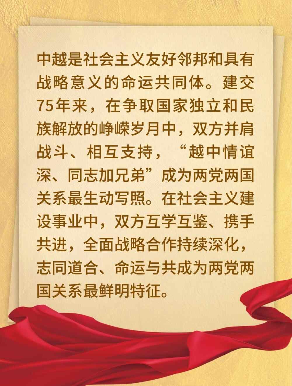 2025年1月18日,中共中央总书记、国家主席习近平同越共中央总书记苏林、越南国家主席梁强互致贺电,热烈庆祝两国建交75周年时指出: