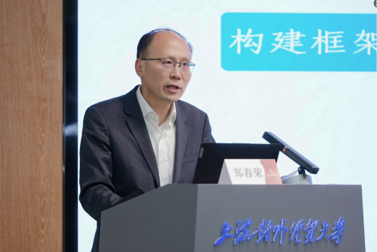 汪荣明向出席本次论坛的各位嘉宾表示热烈欢迎。他表示,上海对外经贸大学近年来非常重视交叉学科建设,区域国别学作为交叉学科大有可为。他指出新一轮科技革命和产业变革迅猛发展,要加快形成“学以致用、用以强学”良性循环,强化涉外领域、新兴领域和重点领域前瞻研究和敏锐洞察的创新实践。