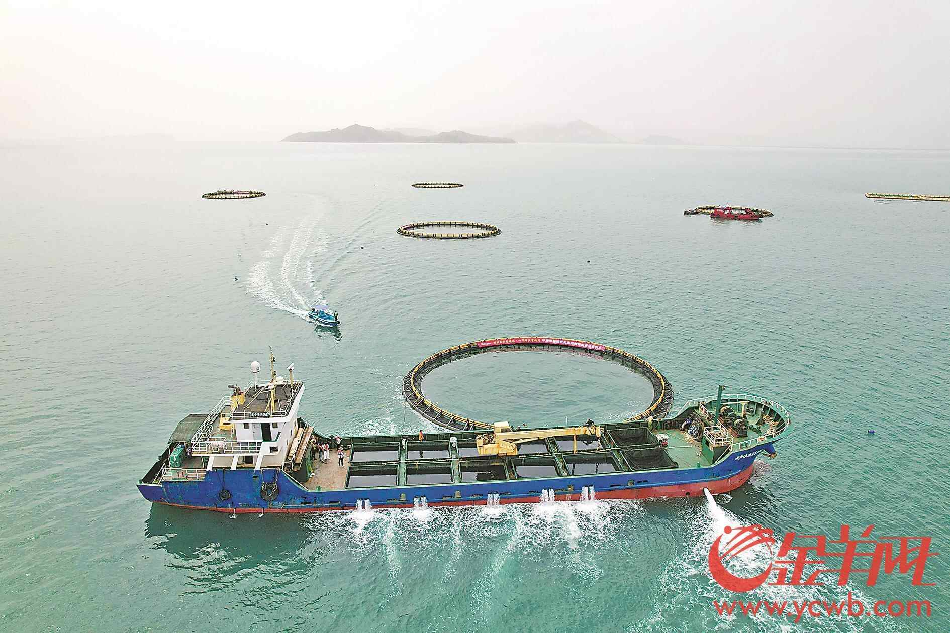 羊城晚报全媒体记者李晓雨摄影报道:4月13日上午,“华润零碳现代化海洋牧场投放鱼苗仪式”在汕尾马宫南江牡岛海域隆重举行,5万公斤鮸鱼苗正式投放至9口重力式深水网箱。