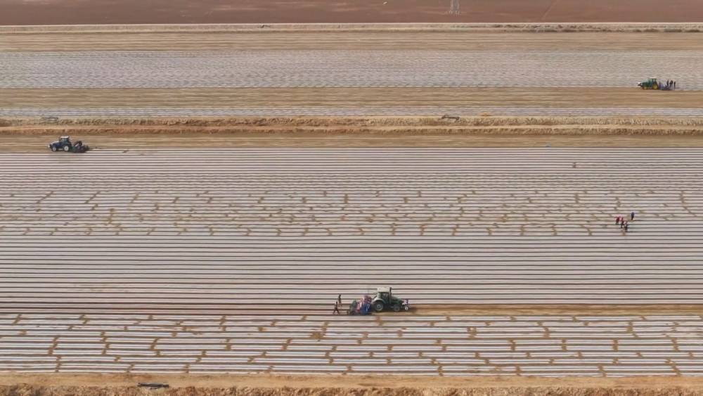 眼下,随着气温转暖,新疆各地陆续进入棉花播种期。天山南北成千上万亩的棉花地里,机械化种植全面铺开,场面壮阔。