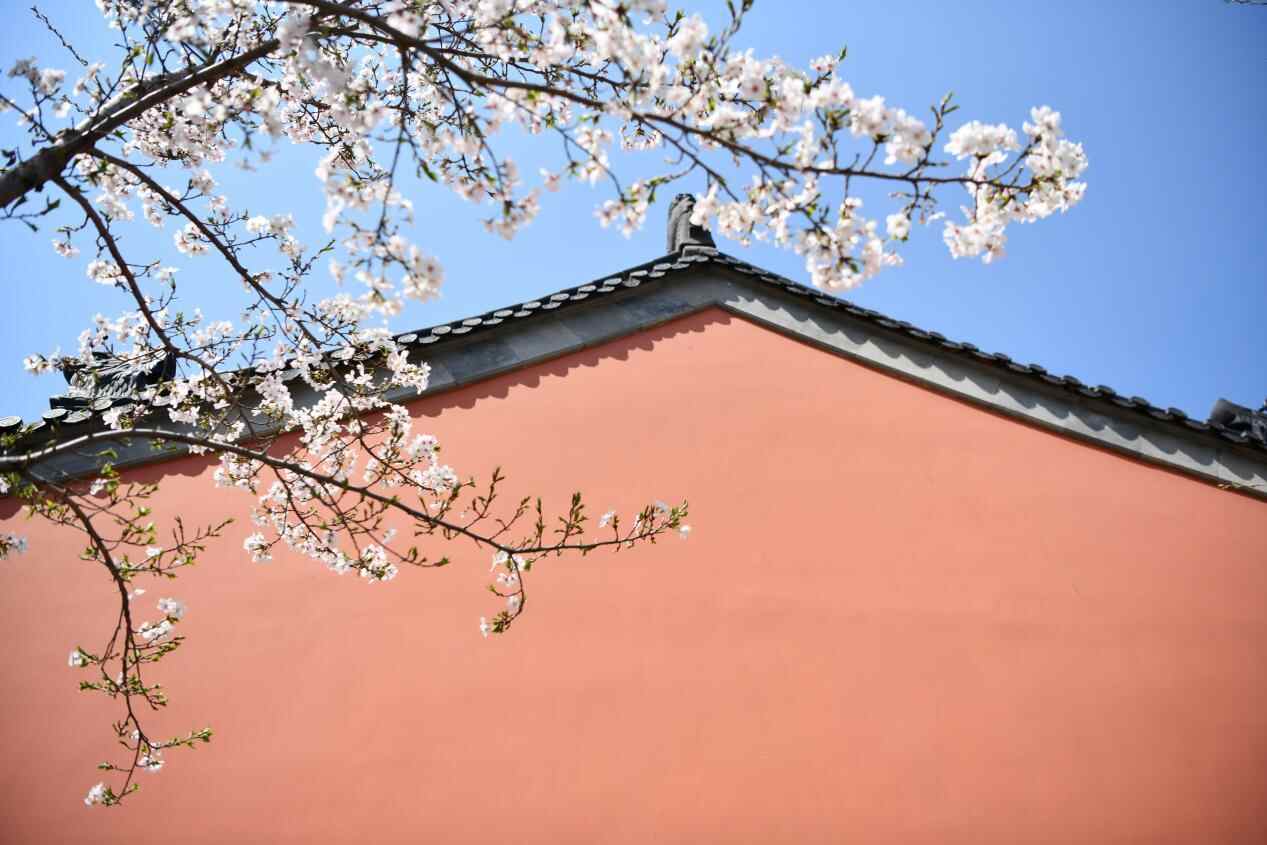 樱花与红墙相互映衬,格外美丽。孙旭晖 摄