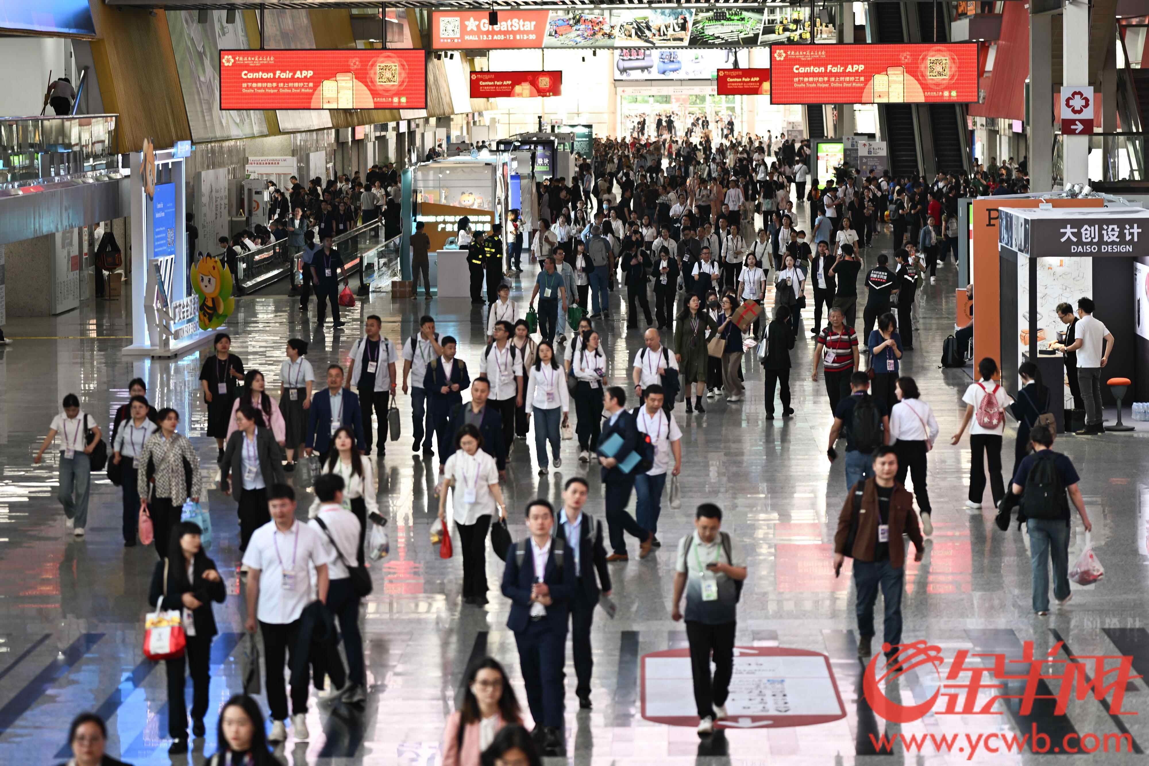 中外记者看到的是广交会展馆19个展区中,人潮依旧涌动。