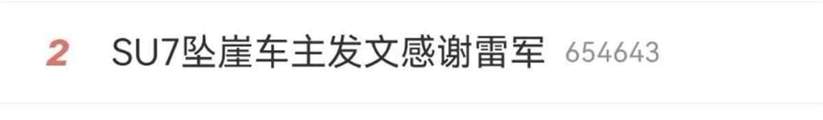 随后,话题#SU7坠崖车主发文感谢雷军#冲上微博热搜。