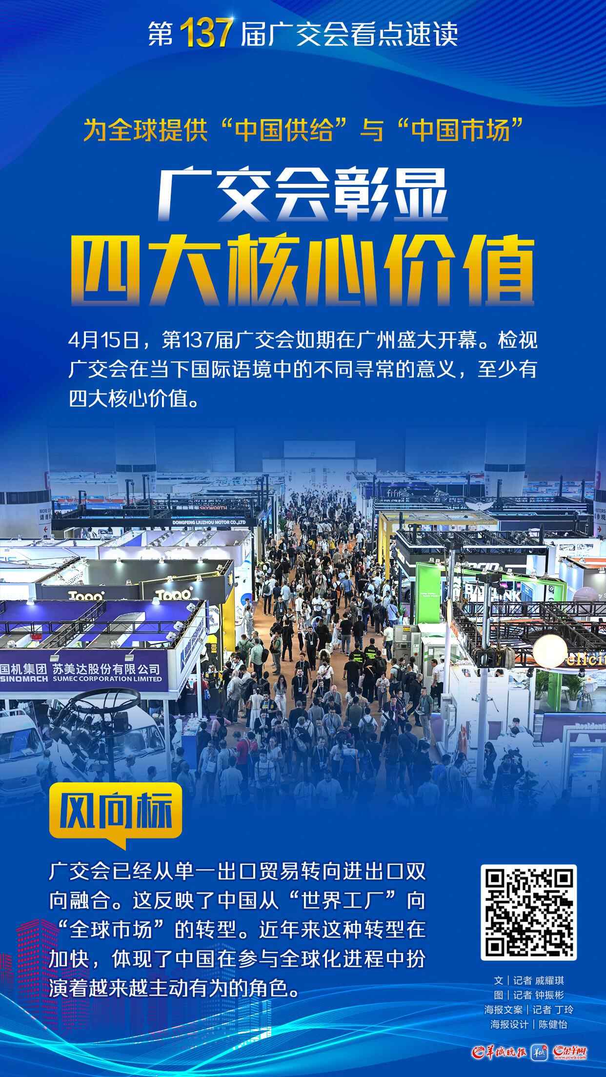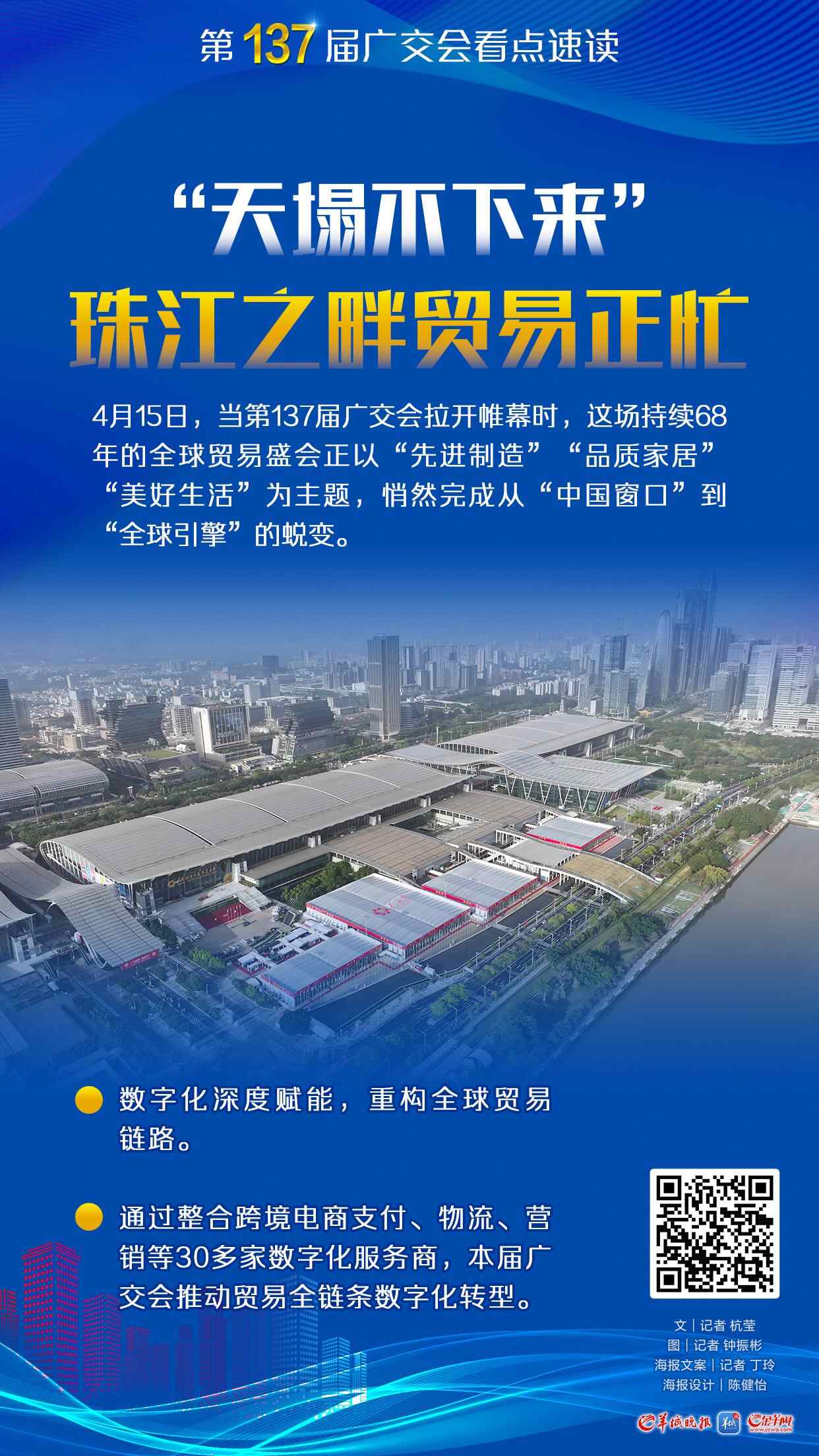 珠江之畔,再赴春日之约。4月15日,第137届中国进出口商品交易会开幕。现场客商如云,在这个备受海内外瞩目的时刻,羊城晚报推出多篇评论文章,呈现广交会在全球贸易中的重要性,特以系列海报展示该组评论稿件要点。