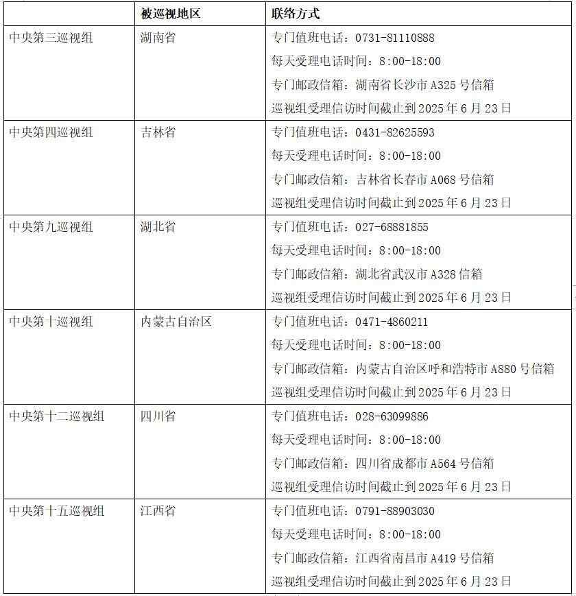 巡视期间,各中央巡视组均设立专门值班电话、专门邮政信箱,受理群众来信来电来访。