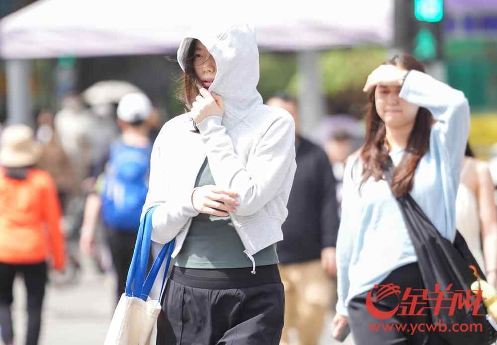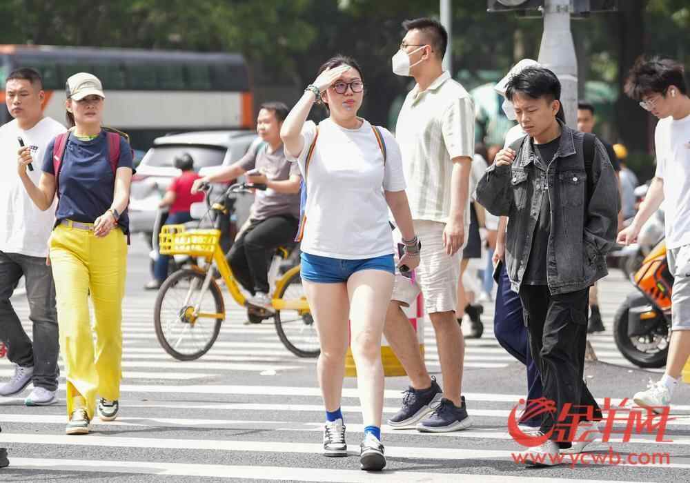 正午时分的广州,不少市民在阳光中身穿夏装出行。4月15日的广州国家基本气象站最高气温达33.3℃。