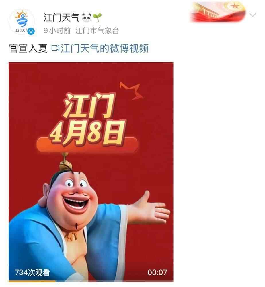 江门市气象部门亦表示根据当地气象记录,倒推江门已在4月8日进入夏天。