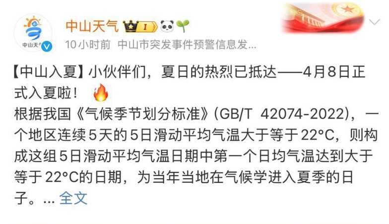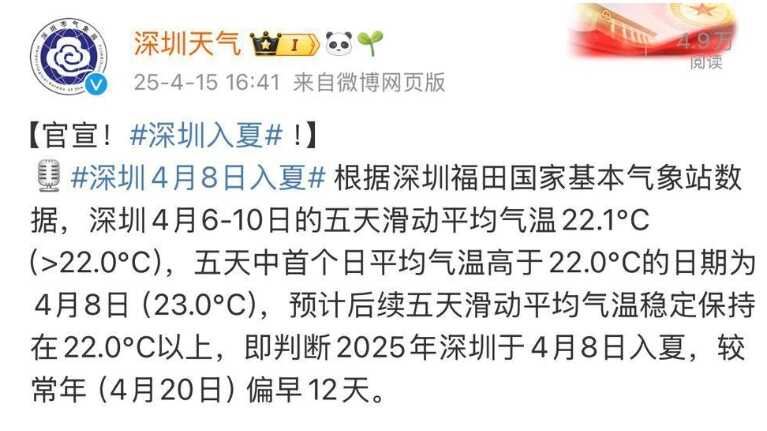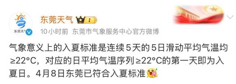 广东也不甘示弱,深圳、中山、江门、东莞昨日“官宣”已于4月8日入夏。