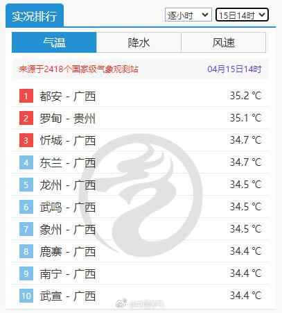其实,不少南方的小伙伴已经触摸到了夏天的衣角。昨日,广西霸屏全国高温榜,35℃的温度让人看着就汗流浃背。