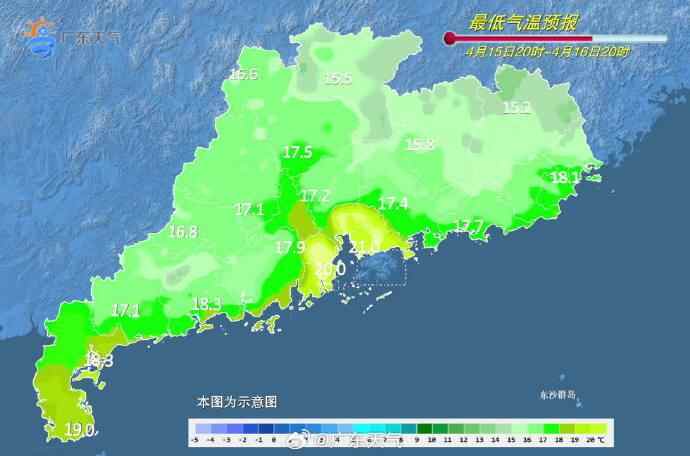 17日,韶关、清远、珠江三角洲西部市县多云,有分散(雷)阵雨,早晚有轻雾,其余市县多云。最低气温:粤北、粤东、珠江三角洲东部市县15℃~18℃,其余市县19℃~23℃。