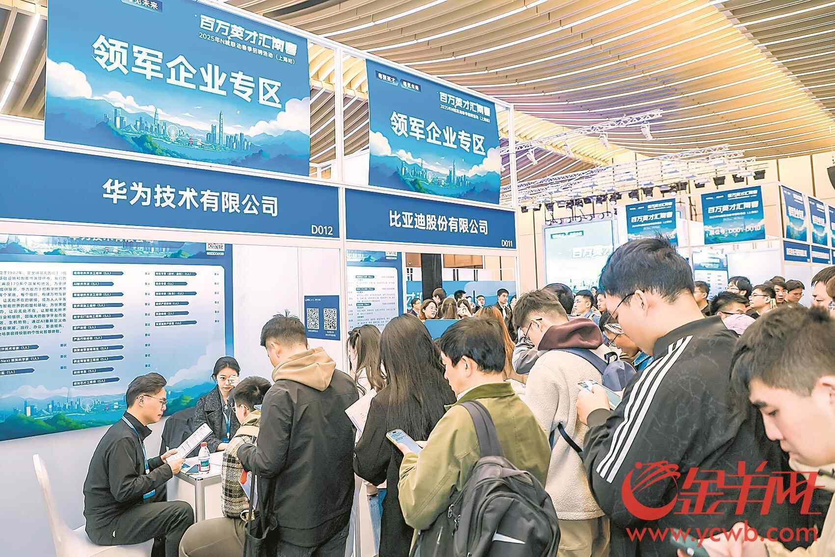 此次招聘会上,华为、腾讯、比亚迪“三巨头”带一众专精特新“小巨人”在上海发出邀约,期待年轻学子一起到深圳共谋未来科技盛世。深圳机器人“十三太保”诚邀懂创新、会创业的年轻人共同开启“创新之门”。深圳国资界世界500强龙头携30家国企齐齐出动,200余家深圳中小学和一批医疗机构组团赴沪,诚意十足。腾讯等科技企业还提供近万个高质量实习岗位,让学子提前体验成为深圳人。