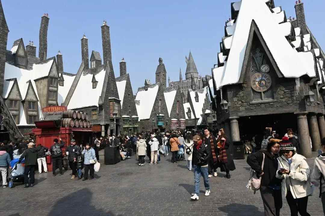 △北京环球影城,游客正在打卡《哈利·波特》等电影故事场景。