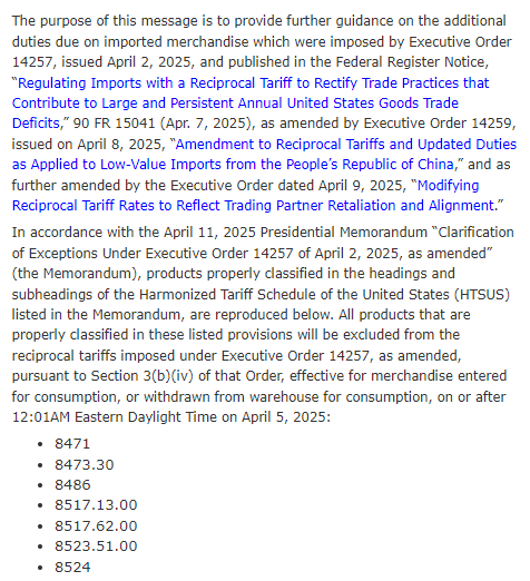 美国海关与边境保护局当地时间4月11日晚宣布,联邦政府同意对智能手机、电脑、芯片等电子产品免除所谓“对等关税”。这距离美国政府2日宣布所谓“对等关税”,刚刚过去9天。
