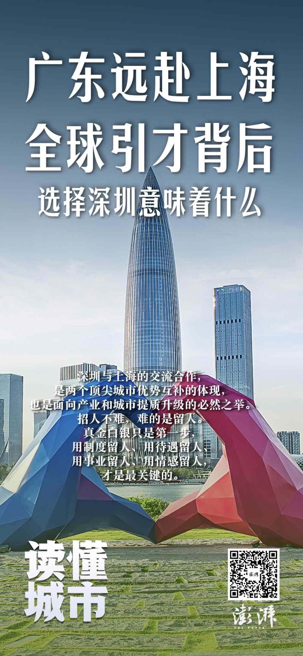人随产业走,人往高处走。深圳对年轻人和高端人才的吸引力,根植于其蓬勃发展且日新月异的现代化产业体系,依托于“大企业顶天立地,中小企业铺天盖地”的全方位创新体系,更受益于“来了就是深圳人”的开放包容的社会环境。
