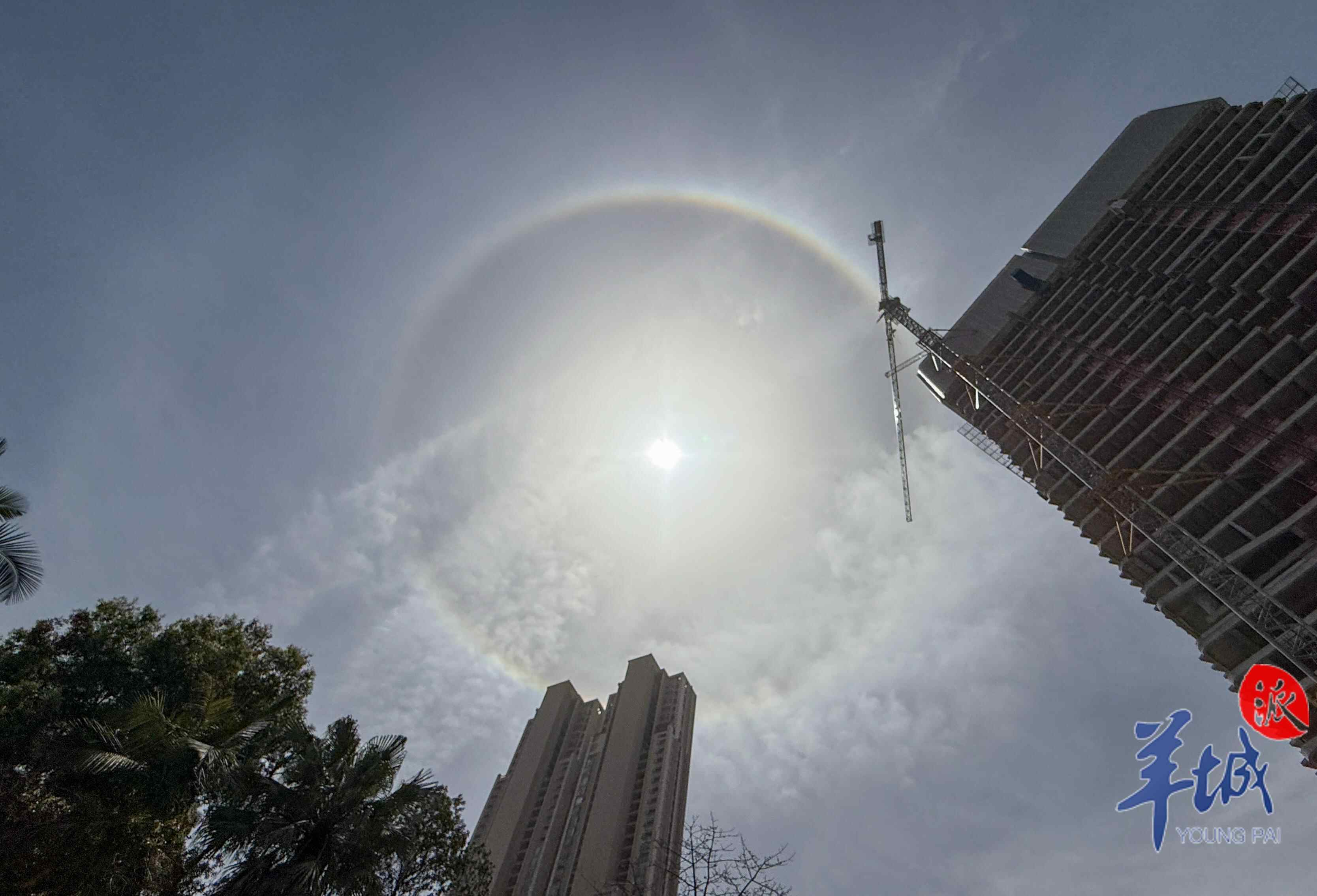 4月14日上午,不少广州市民抬头望天,看到天空中的太阳外围,“长”了一个彩虹圈。有市民将这一幕拍下,发布在社交媒体。
