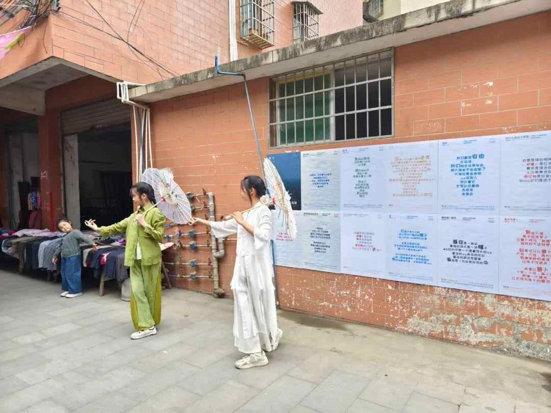 在春日长廊,翁城小诗人们跳着春天的舞蹈,唱着春天的歌曲。观众驻足在中大街上,欣赏着翁城孩子们的纯真表演。春天的诗意,在这里欢快而歌,浪漫起舞。