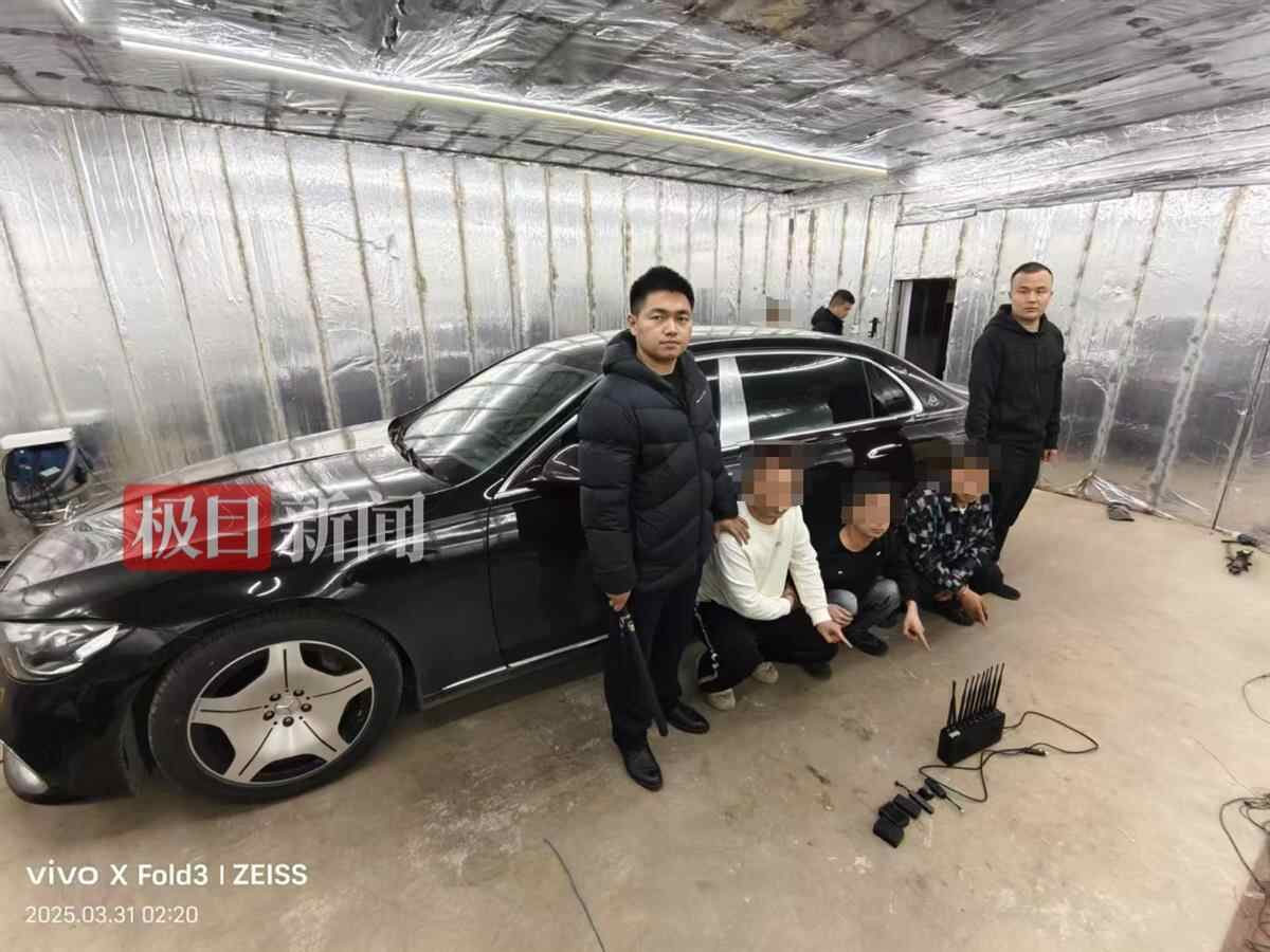 民警对三人展开突击审讯,随后又马不停蹄地赶赴约40公里开外的孝昌县一处偏僻山村。31日凌晨1时许,民警快速出击,来到村里一处自带维修车间的民房,院落内有一间信号屏蔽房,里面停放着一辆被拆下座椅的迈巴赫。正在加班加点拆除GPS定位器的犯罪嫌疑人陈某,被民警当场抓获。
