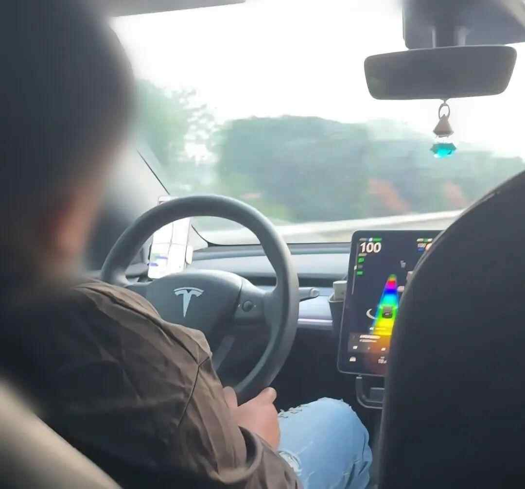 该网友发布的视频显示,涉事司机驾驶特斯拉,靠在座椅上歪着头闭上眼,双手搭在大腿上握住方向盘底部。