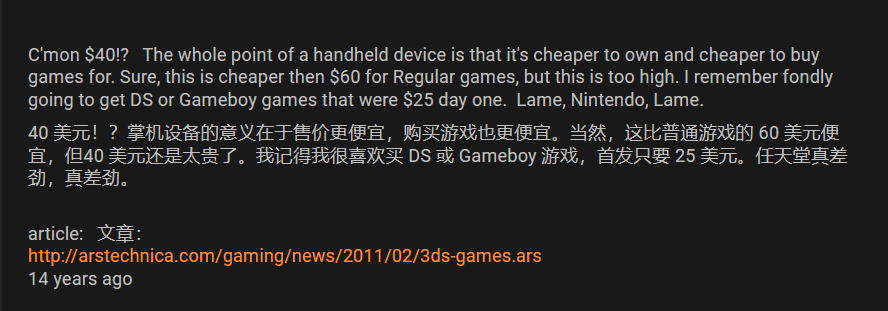 在十几年前的3DS时代,大部分任天堂商店里的游戏标准售价为40美元,原因在于掌机主要面向休闲玩家和年轻群体,为了提高市场接受度游戏定价通常更为亲民——尽管彼时的游戏售价相较于DS或是Gameboy时代已经贵了很多。