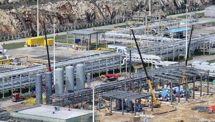 这是2024年6月21日拍摄的位于珠海经济开发区的中海石油深海开发有限公司二氧化碳回收利用项目塔器安装现场。新华社发(邱婷 摄)