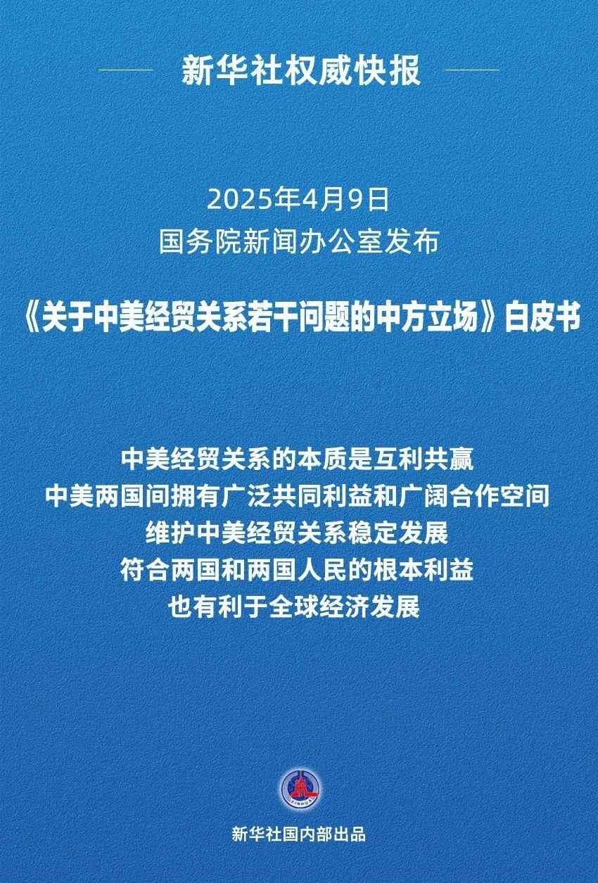国务院新闻办公室9日发布《关于中美经贸关系若干问题的中方立场》白皮书,澄清中美经贸关系事实,阐明中方对相关问题的政策立场。