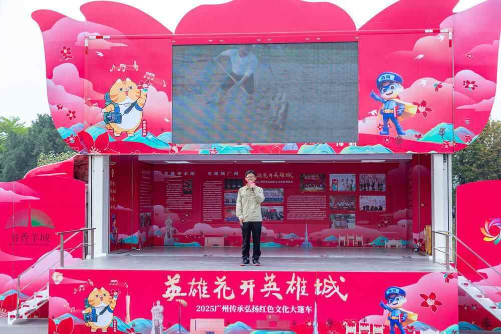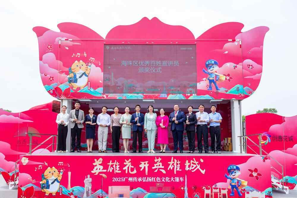 活动伊始,“英雄花开英雄城·2025广州传承弘扬红色文化大篷车”旗帜传递至海珠区。