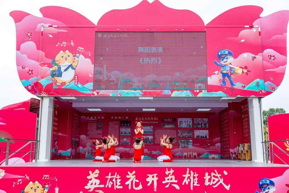 在大篷车舞台上,精彩的文艺节目也接连登场。舞蹈《热烈》通过孩子们灵动的舞姿和灿烂的笑容,展现了广州作为“英雄城”的红色底蕴与时代活力。歌曲独唱《全运来四方》表达了广州“全民迎全运”的激情。