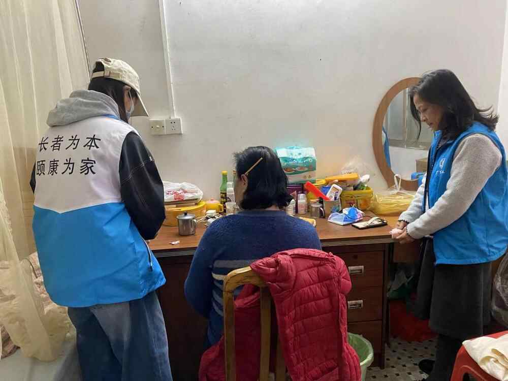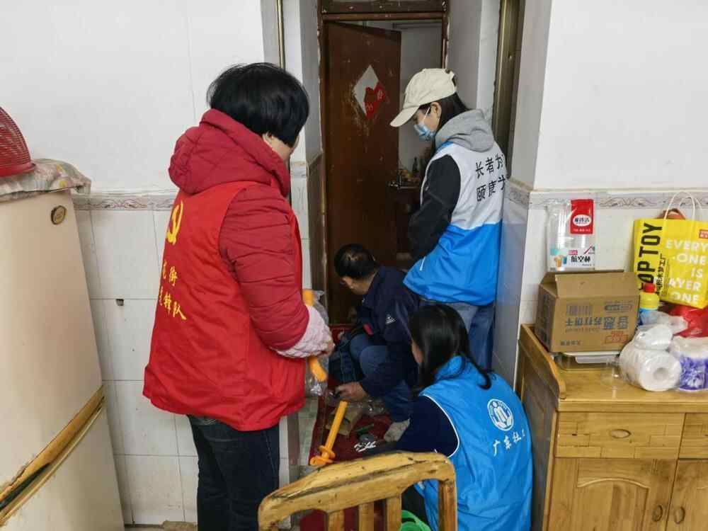 此前,在日常走访时,社工和居委干部了解到何伯的家庭困境:何伯与妻子均患有高血压等慢性病,每月医药支出占退休金近半数。妻子因车祸重伤丧失行动能力,居家照护压力全落于何伯一人。其子因赌债离家十余年,孙子自3岁起的生活费、学费均由何伯靠门岗工作及零工勉强维持。居住的老旧小区房屋存在安全隐患。