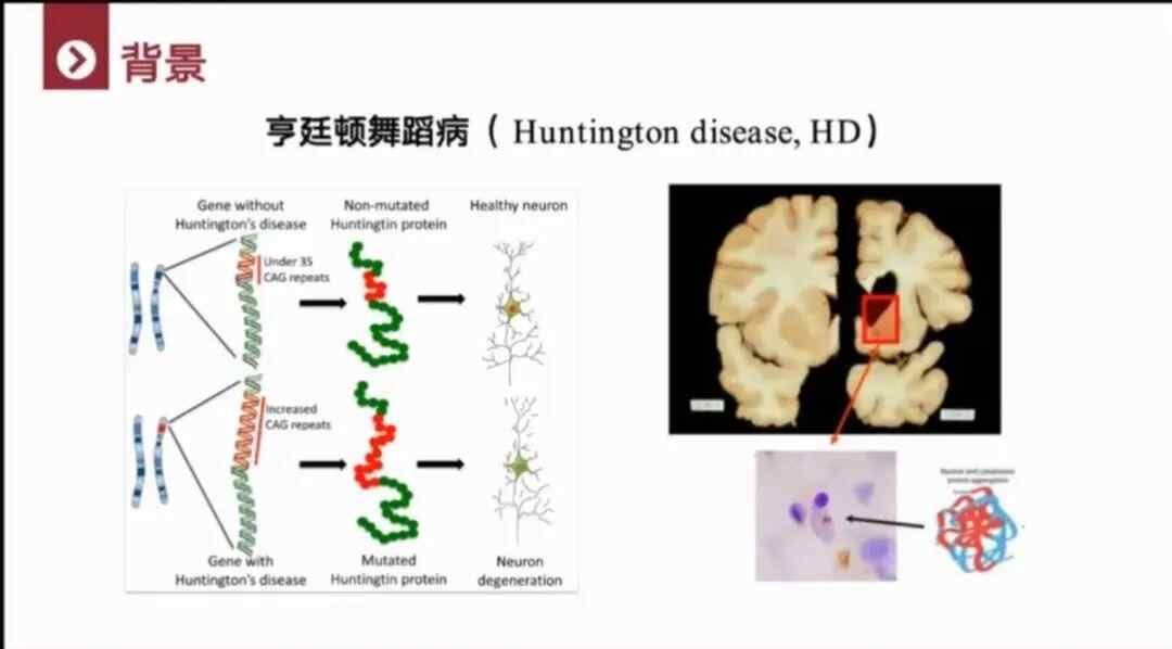 资料显示,亨廷顿舞蹈症是一种罕见的常染色体显性遗传疾病,该病因患者面部、四肢、身体不自主地快速抽动或跳动,看似在跳舞而得名。其主要症状包括不自主的舞蹈样动作、认知障碍与精神障碍,进一步发展可导致无法行走、吞咽困难,引起严重痴呆。该病多发生于中年人,病情呈进行性恶化。早期诊治可延缓病情,但尚且无法治愈。