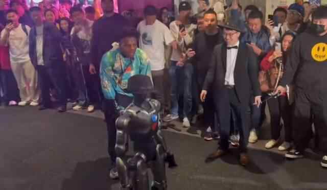 与众擎机器人PM01共跳斧头舞时,成功完成空翻与舞蹈互动。