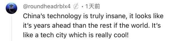 “中国的技术真的很疯狂,看起来它比世界其他地区领先很多年。这就像一个科技城,真的很酷!”