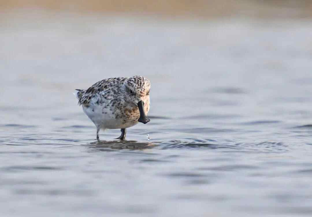 山外西海滩是鸟类摄影的宝藏之地,绵长沙质滩涂与潮汐为鸟类提供了天然栖息场。每年10月至次年4月,极危物种勺嘴鹬如约而至,它们混迹于鸟群中,用铲状喙在浅滩扫食的姿态灵动可爱。3月份,陈杰在这里还拍到了蛎鹬。