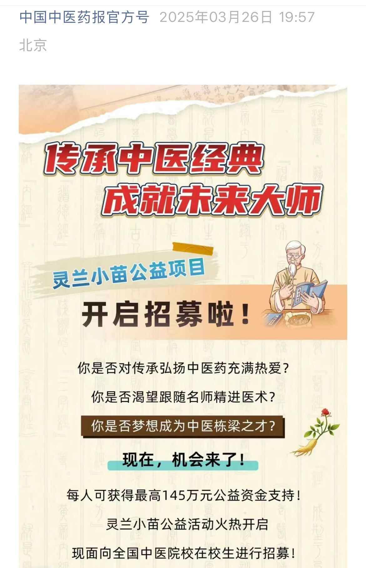 近日,中国中医药报官方号发布招募,全文背诵《黄帝内经》即可获得25万元资助奖励。据了解,《黄帝内经》约18万字。文中还写道,表现优异者有机会师从中医大师,每人每年资助12万元,连续10年,共120万元。