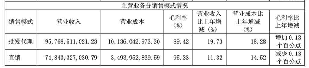 相比直销模式高达95.33%的毛利率,批发代理模式毛利率仅有89.42%。有了对比,也就不难理解此前贵州茅台对直销渠道的重视了。