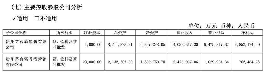 主要控股参股公司方面,贵州茅台酒销售有限公司去年实现营收1408.23亿元,据记者计算同比增长15.2%;净利润485.22亿元,据记者计算同比增长近14%。贵州茅台酱香酒营销有限公司实现营收242亿元,净利润76.25亿元。