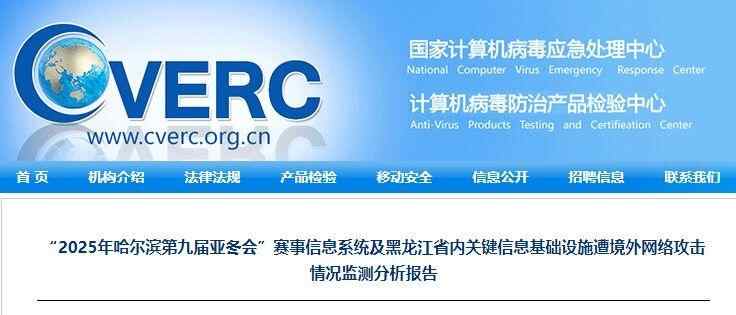 新华社哈尔滨4月3日电(记者王君宝 张建新)3日,国家计算机病毒应急处理中心计算机病毒防治技术国家工程实验室发布“2025年哈尔滨第九届亚冬会”赛事信息系统及黑龙江省内关键信息基础设施遭境外网络攻击情况监测分析报告,内容显示2025年1月26日至2月14日期间,亚冬会赛事信息系统遭到来自境外的网络攻击达270167次。