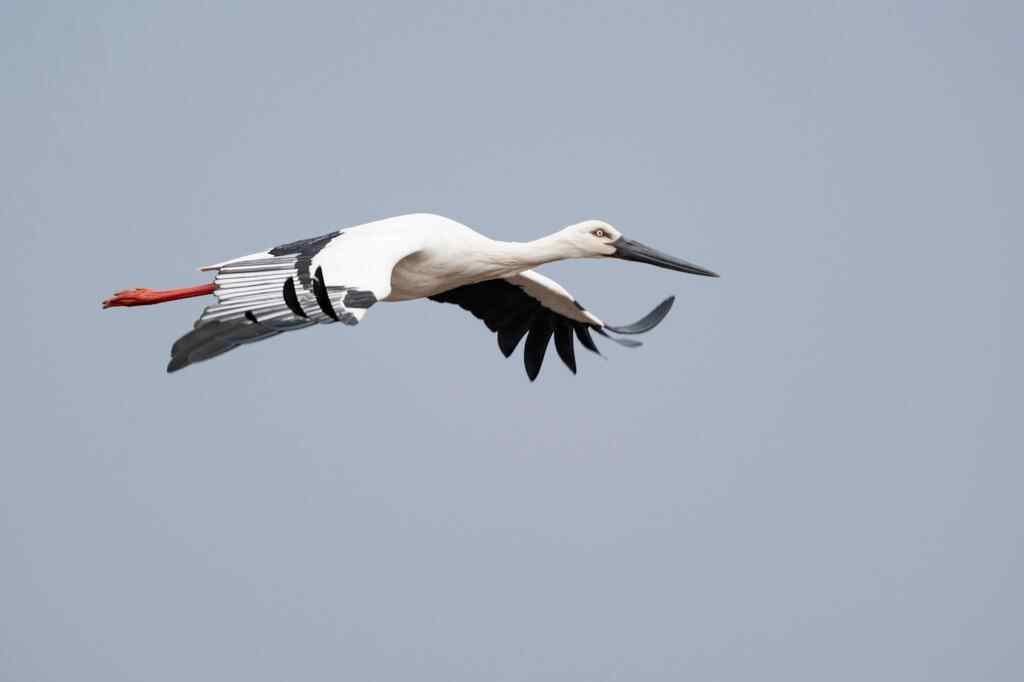 这是4月1日拍摄的兴凯湖国家级自然保护区内的东方白鹳。