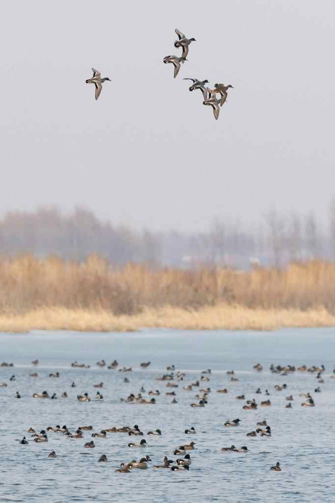 近日,位于黑龙江省鸡西市的兴凯湖进入候鸟迁徙高峰,数十种鸟类或盘旋于湿地上空,或在水面畅游,为大地增添勃勃生机。