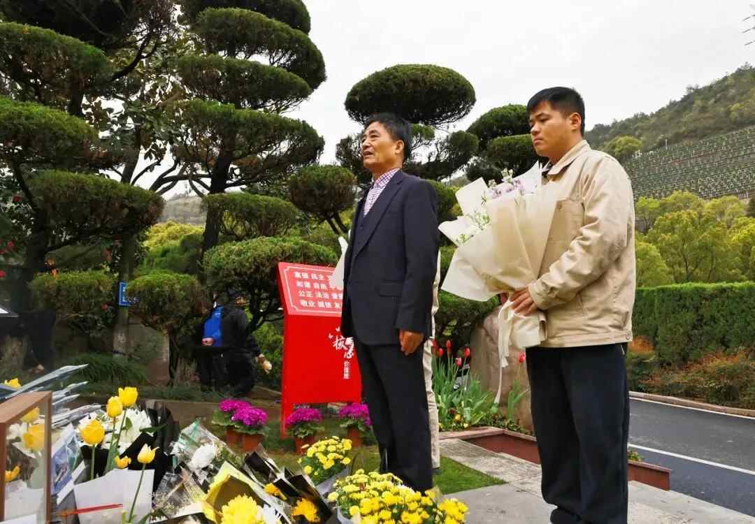 现场,还有来自崇贤二小的学生们,孩子们戴上鲜花来祭奠英雄。
