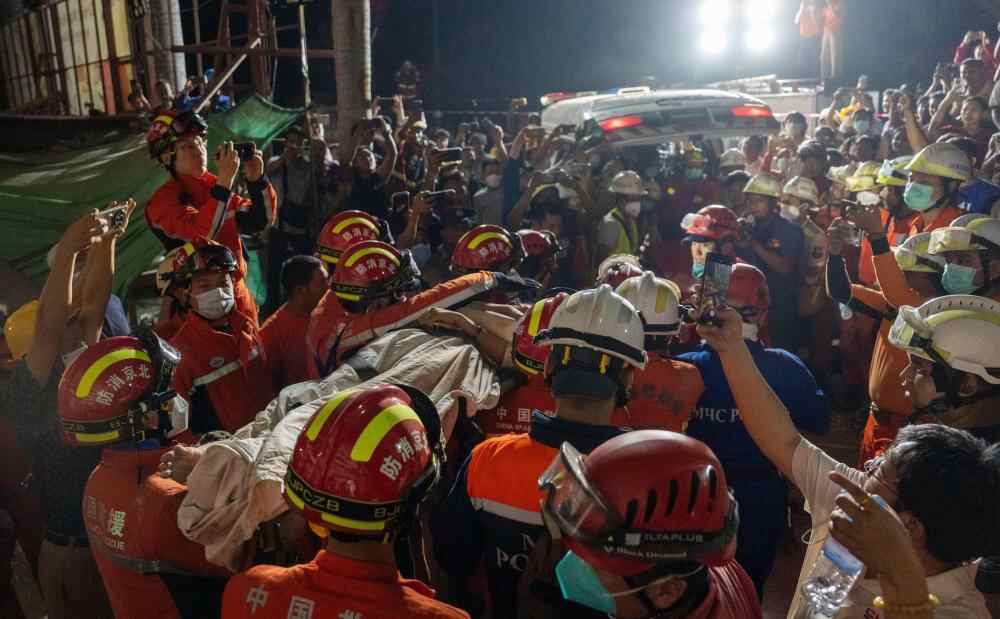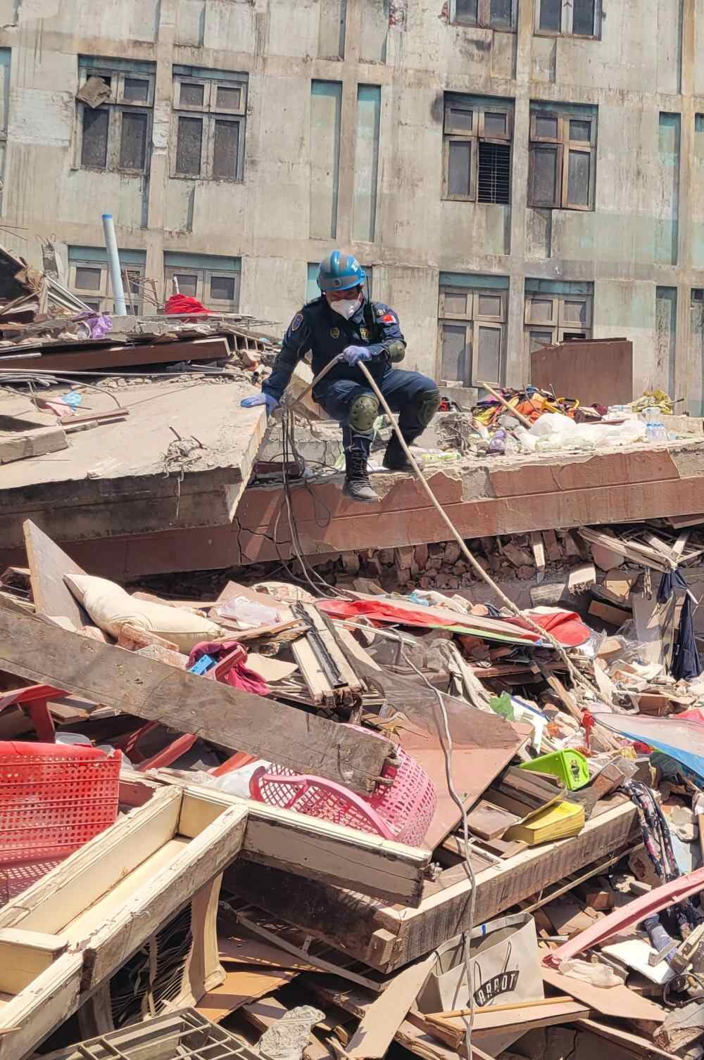 3月31日,中国救援队和公羊救援队合作在缅甸曼德勒天空公寓成功救出一名幸存者。