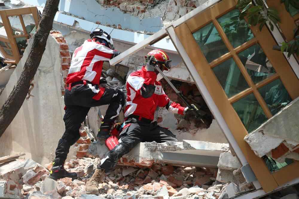 3月31日,中国红十字国际救援队队员在缅甸曼德勒开展搜救行动。
