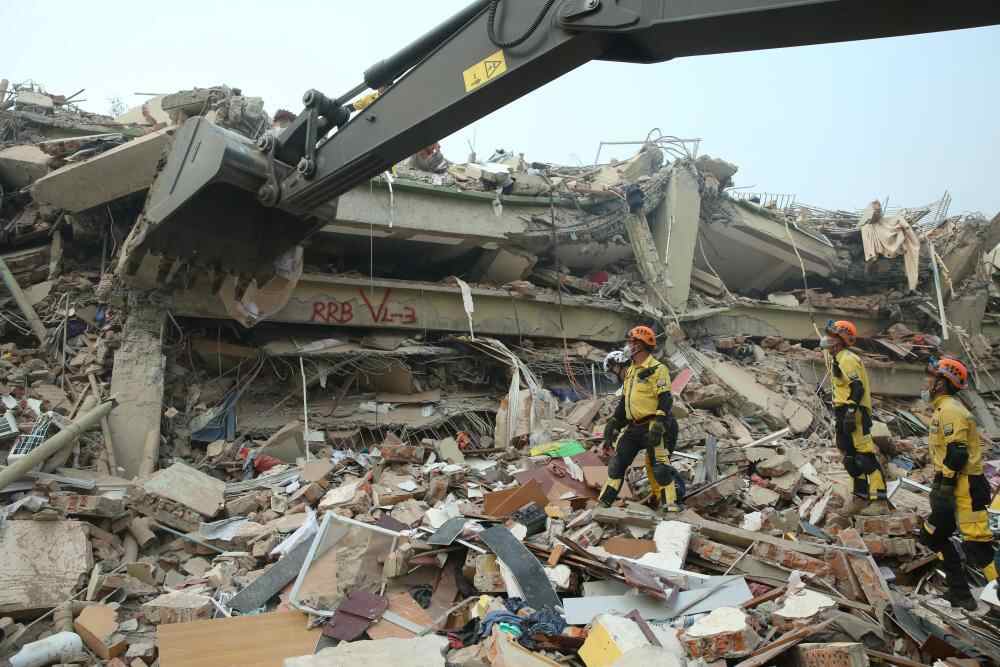 3月30日,中国公羊救援队在缅甸曼德勒天空公寓开展搜救行动。