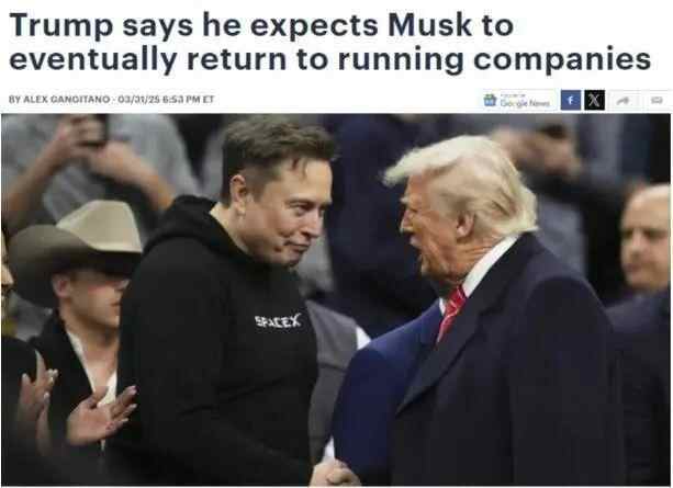 特朗普也在3月31日就此回应称:“他(马斯克)有一家大公司要运营。总有一天他会回去的。他想要(回去)。”他表示,“政府效率部”也将在某一时刻终结,也会尽可能留住马斯克。