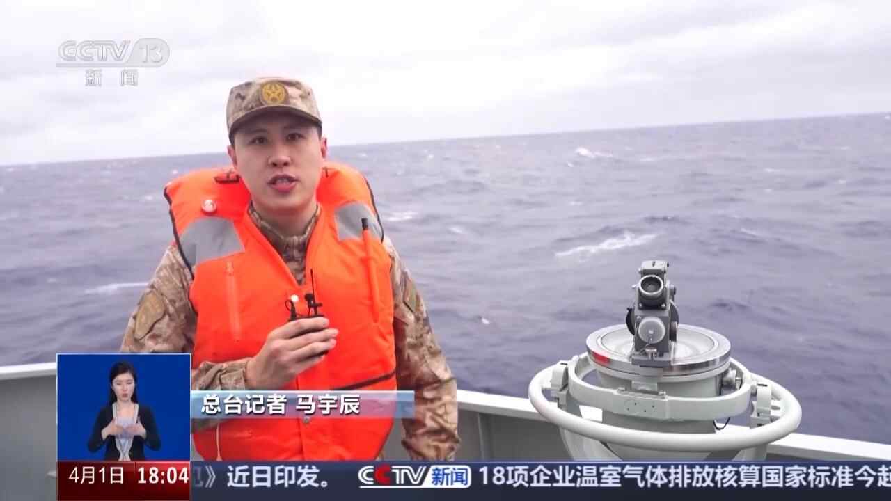 记者 马宇辰:现在是4月1日上午7点30分,我正跟随海军益阳舰编队在台岛东部海域执行破限进逼与执法管控任务。今天海上能见度在5海里以上,浪高在3米左右,编队各舰艇正密切协同,按照战斗编组,全速破浪前进。